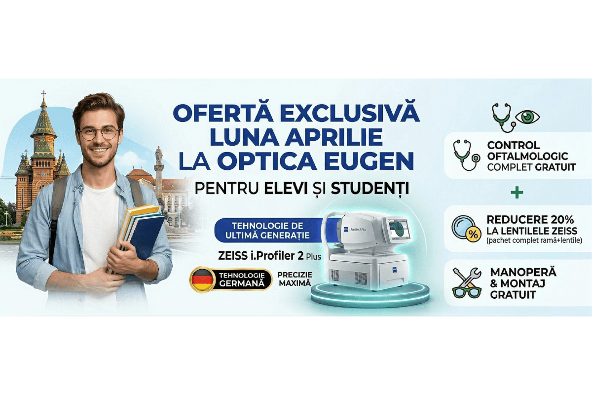 La Optica Eugen, în luna aprilie, elevii și studenții beneficiază de o ofertă specială în locațiile noastre din Timișoara, Sânnicolau Mare, Jimbolia și Lugoj!